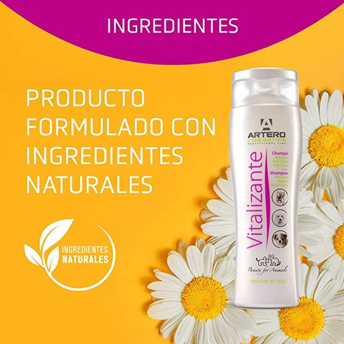 Champú Vitalizante para perros especialmente diseñado para las razas con el pelo fino que necesiten un aporte extra de volumen, y para razas de pelo duro. Su acción vitamínica y sus complejos reengrasantes le dan al pelo la suavidad y textura de un pelo sano, fuerte y brillante. Formato de 250 ml.