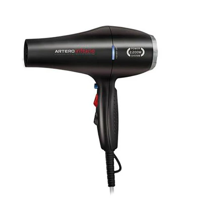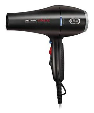 Secador de pelo profesional que reduce el tiempo de secado a la mitad gracias a su potente motor. Artero Inferno también reduce la electricidad estática y deja el pelo suave y brillante. Permite regular temperatura y velocidad, con botón de aire frío. Incluye 2 boquillas giratorias. Color: negro.