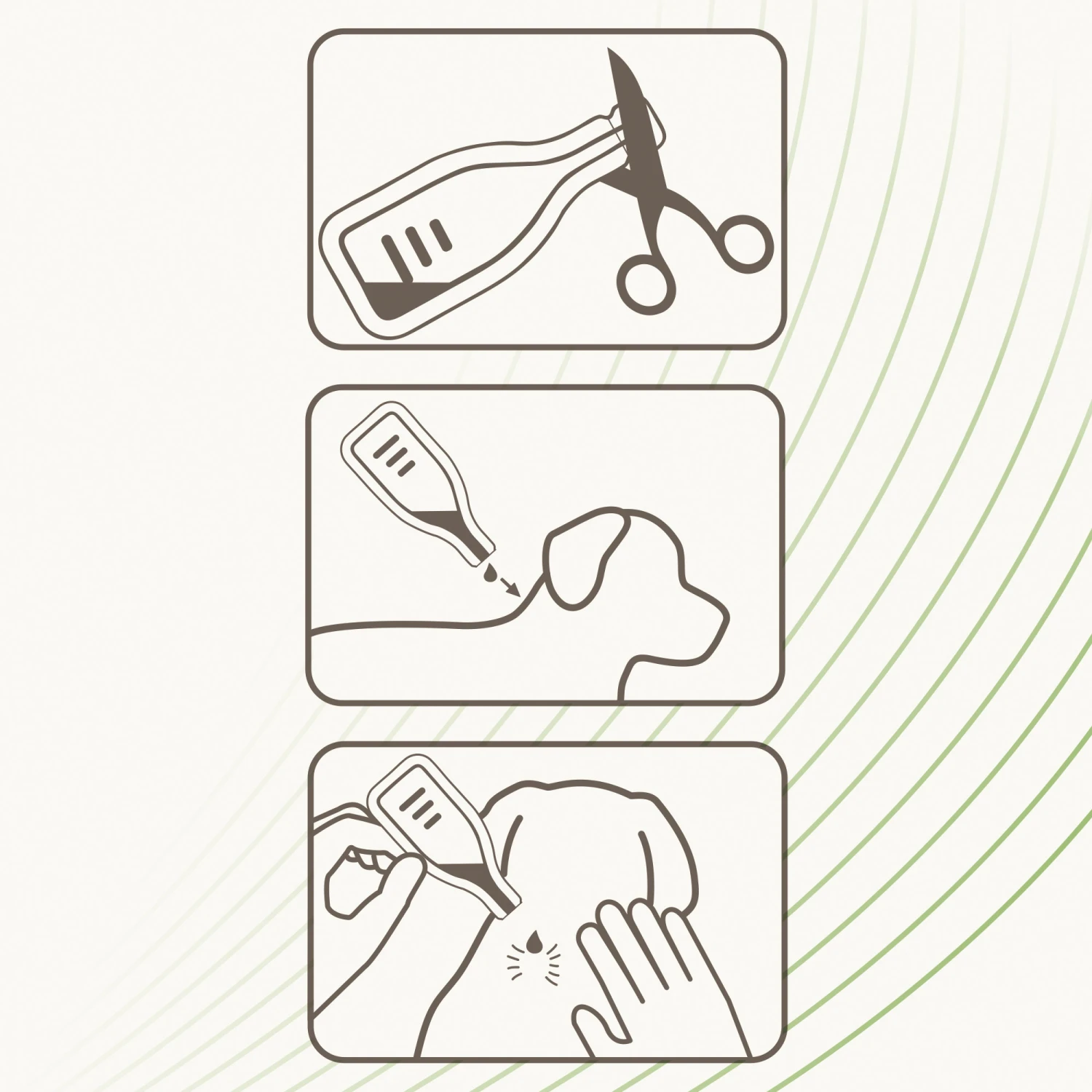 Pesar la mascota antes de su uso. Abrir la pipeta y aplicar entre los omóplatos. A contrapelo por toda la columna.