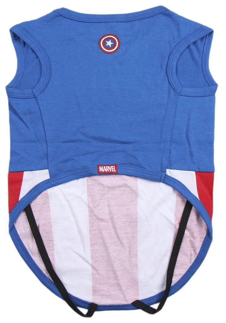 Camiseta para Perros CAPITÁN AMÉRICA© para vestir a tu mascota con las camisetas más divertidas del mercado, impresión en serigrafía, elásticos en patitas y puños ajustables. Tu perro vestirá un casual style, con su personaje preferido Avengers.