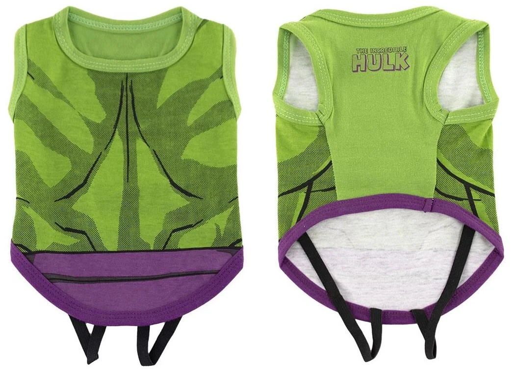 Camiseta para Perros HULK© para vestir a tu mascota con las camisetas más divertidas del mercado, impresión en serigrafía, elásticos en patitas y puños ajustables. Tu perro vestirá un casual style, con su personaje preferido Avengers.