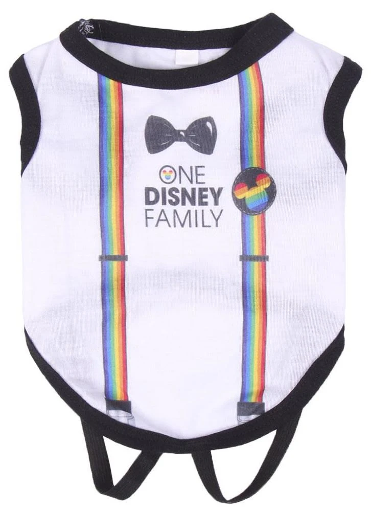 Camiseta para Perros DISNEY PRIDE© para vestir a tu mascota con las camisetas más divertidas del mercado, impresión en serigrafía, elásticos en patitas y puños ajustables. Tu perro vestirá un casual style, con mucho orgullo. Diseño exclusivo del orgullo gay.