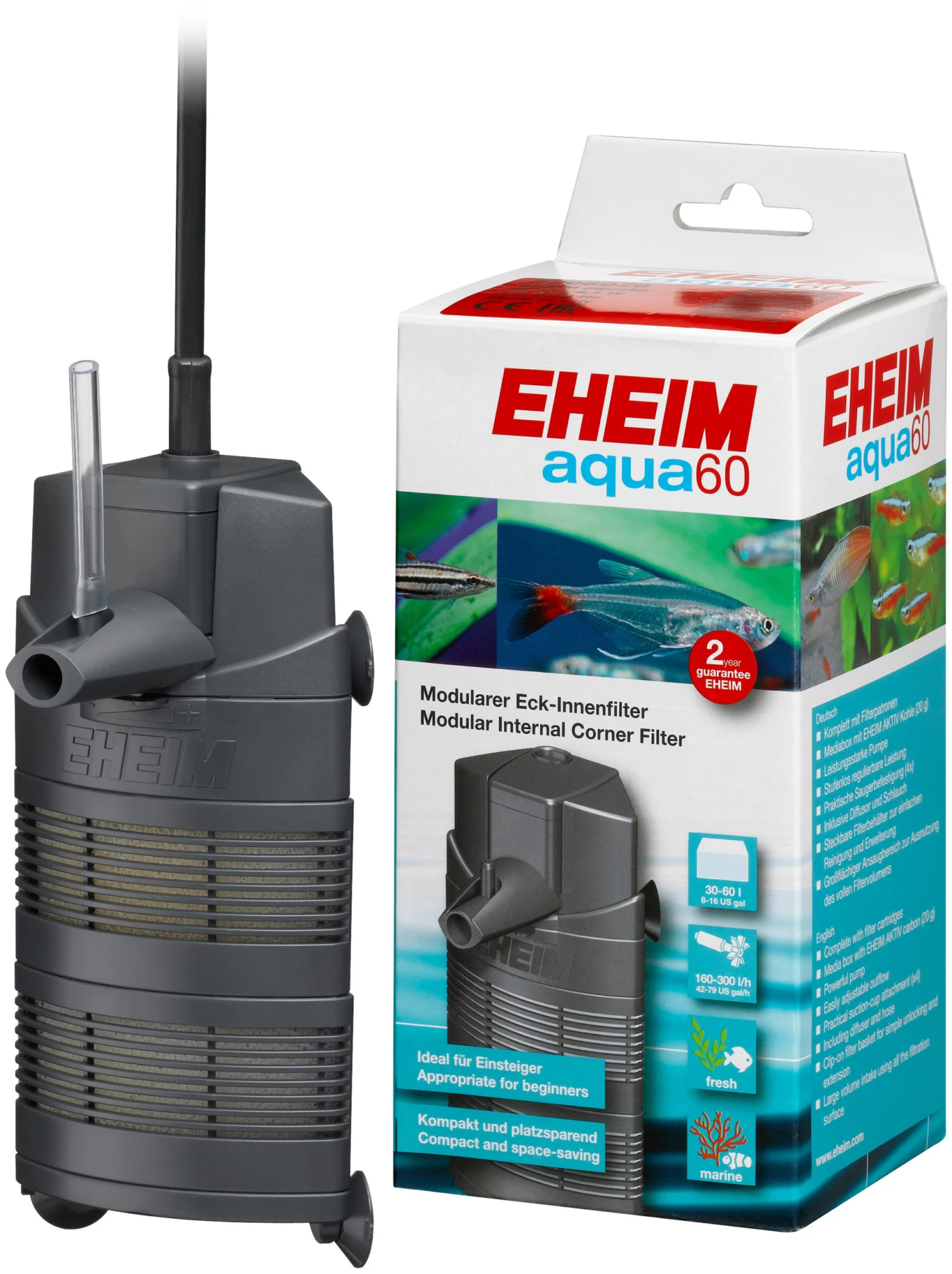EHEIM aqua – el filtro interior modular de esquina con cestas filtrantes enchufables. Para acuarios pequeños y medianos. Ideal para principiantes. Es compacto, ocupa muy poco espacio, ofrece un alto rendimiento y es regulable de forma continua.