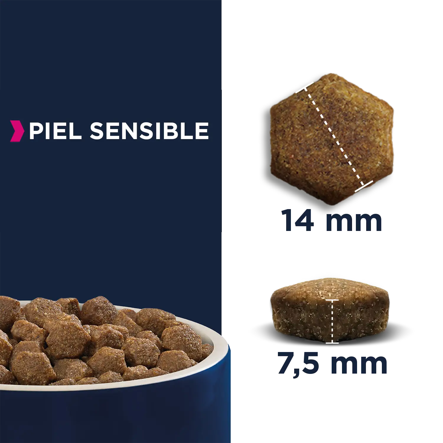 Para perros de todas las razas a partir de los 12 meses de edad. Indicado para todos aquellos perros que sufran problemas en la piel. Con este alimento tu mascota lucirá un manto fuerte y brillante, y a la vez hará una dieta sana y equilibrada.