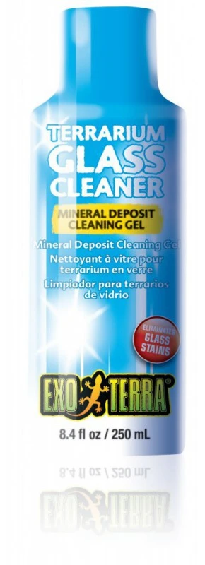 Es un limpiador para terrarios especialmente indicado para eliminar las manchas de superficies de vidrio, plástico y otras superficies lisas. Elimina las manchas en cristales de forma rápida y muy eficientemente, elimina depósitos de varios minerales con aplicación efectiva y sin esfuerzo. Adecuado para superficies de vidrio, plástico y otras superficies lisas e ideal para la eliminación del calcio y/o manchas de cal. Su fórmula es no tóxica.