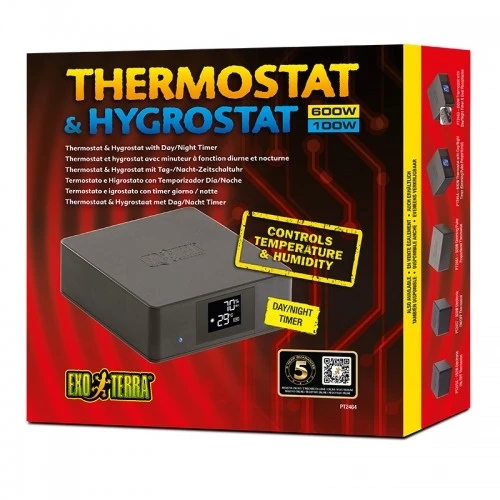 Con el Termostato/Higrómetro de Exo Terra puedes crear un sistema de 24h bien controlado calentando/humidificando, gracias a su temporizador programable que te permite mantener las condiciones de temperatura y humedad requeridas similares a las del desiero y los ambientes tropicales. Este dispositivo también ayuda a prevenir los sobrecalentamientos, enfriamientos y deshidratación durante los días más calurosos del verano o las noches más frías del invierno.