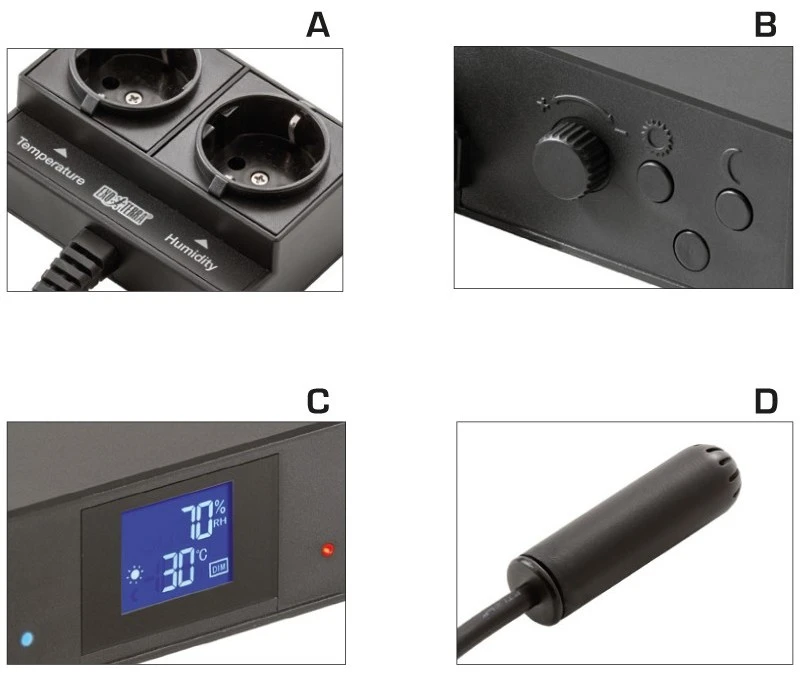 El Termostato e Higrómetro Exo Terra se ajusta según las necesidades de los animales. Investiga a fondo la temperatura óptima adecuada (POTR) y el rango de humedad específico para tu reptil, así puedes conseguir los gradientes de temperatura y humedad dentro del terrario para permitirle a tus reptiles termoregularse y mantener sus niveles de hidratación. Para facilitar la regulación de la humedad, es aconsejable conectar el Humidificador USB Exo Terra, para conseguir los niveles exactos. La sonda remota de temperatura y humedad se coloca siempre cerca de los elementos de calor y humedad, para que las medidas detectadas sean más precisas.