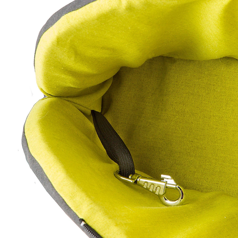 Bijoux está hecha de algodón y tiene una correa interior para enganchar al collar de tu perro para evitar que salga durante el viaje. Fácil y rápido de abrir gracias a su cremallera, Bijoux también tiene una cinta ajustable para colgártelo del hombro. Con bolsillo lateral en donde puedes guardar accesorios. Capacidad máxima de 5 kg.