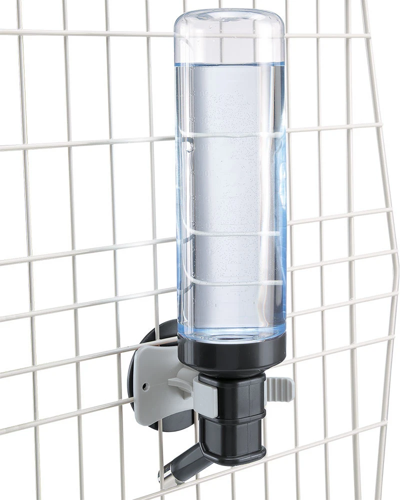 Drinky Dog: ¡el accesorio indispensable para viajar con su perro! Este bebedero de plástico no tóxico y reciclable, con capacidad de 0,6 litros, se fija muy fácilmente a la estructura de la rejilla del trasportín, garantizando así que esté siempre disponible agua. En el exterior de la botella, la escala graduada le permitirá controlar en todo momento el nivel de agua.