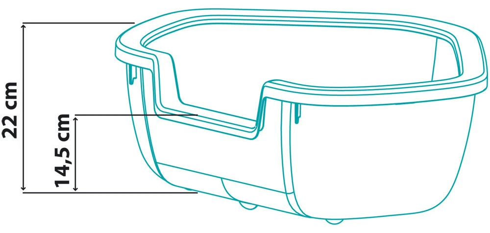 Esta caja está diseñada para ser colocada en las esquinas de la habitación, tiene un marco de plástico que ayuda a mantener la bolsa higiénica en su sitio. Tiene una base más profunda, para asegurar la máxima higiene y prevenir que salga suciedad de la caja. Dimensiones: 57,5 x 51,5 x h 22 cm.