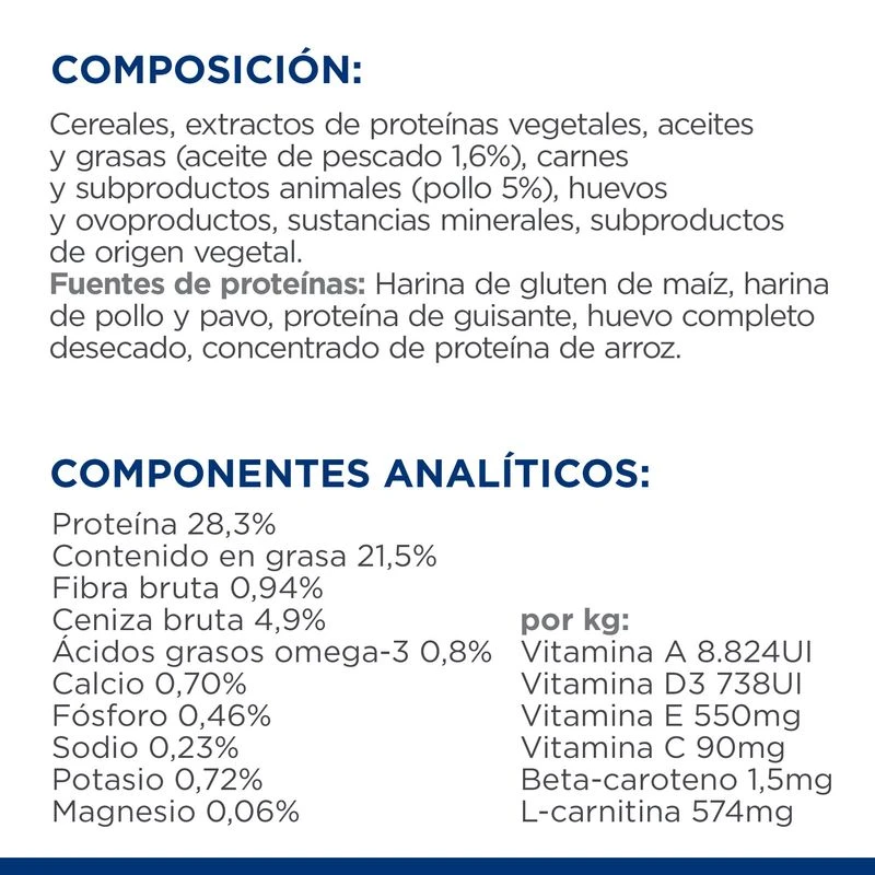 Beneficios clave del pienso Hill’s k/d:Reducida cantidad de proteínas para prevenir la formación de productos tóxicos que puedan producir dolor.Con ácidos grasos omega-3 añadidos procedente de aceite de pescado para ayudar a mejorar el riego sanguíneo en los riñones.Ayuda a neutralizar los radicales libres puesto que contiene una elevada cantidad de antioxidantes.Proporciona un excelente sabor y facilita la mezcla con el alimento seco que a su gato le encantará.
