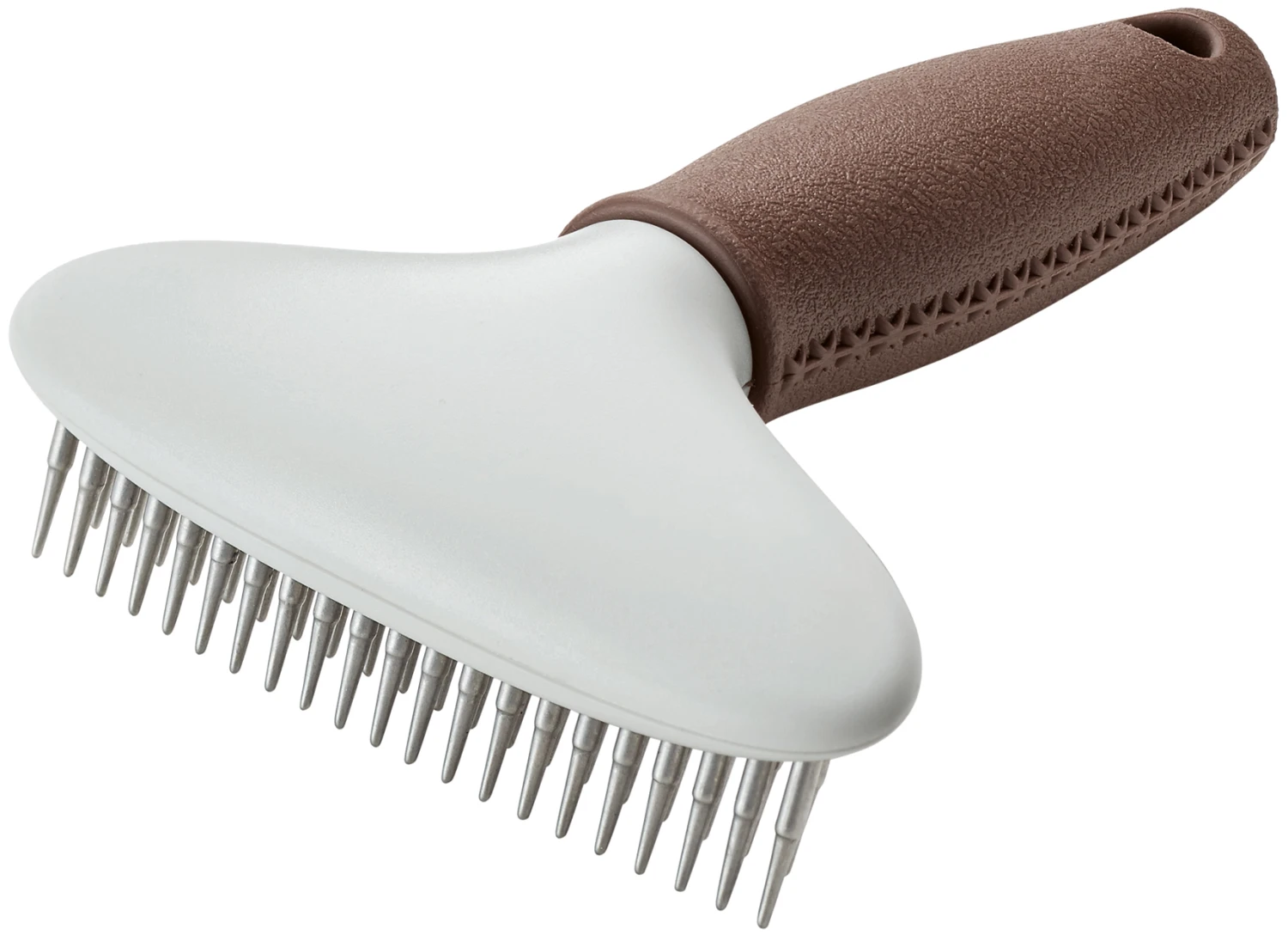 El peine de curry desenredante le permite domar cualquier melena: los pasadores de acero inoxidable de alta calidad colocados en dos filas garantizan un cuidado especialmente intensivo de la capa interna. De esta manera, puede eliminar el pelaje muerto de los pelajes extremadamente gruesos y densos, lo que es una verdadera ventaja cuando se trata de higiene. El peine de curry es adecuado para perros de pelo medio y largo, y la empuñadura ergonómica con apariencia de cuero de alta calidad garantiza que el peine sea antideslizante y fácil de usar.