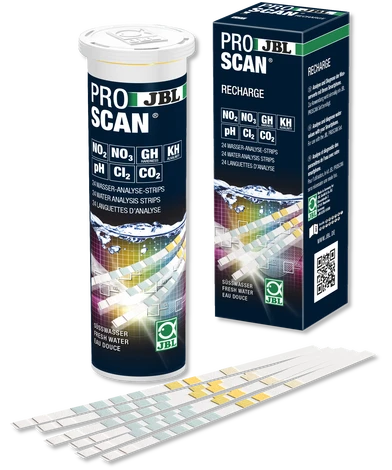 La nueva generación de análisis del agua: descargar la app ProScan gratuita, sumergir la tira de test en el agua del acuario, colocar sobre la escala de colores
