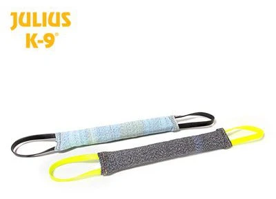 Mordedor de tela francesa con dos asas para jugar. Diseño original de Julius K9 hecho en algodón por fuera y nylon elástico por dentro. Con mangos amplios para un agarre cómodo y seguro. Disponible en 5 tallas.