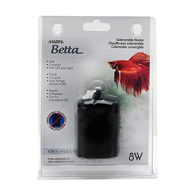 El calentador para peceras y acuarios Betta de 8w de potencia es un accesorio especialmente pensado para peceras Betta o acuarios con una capacidad menor a 5 litros que mantiene la temperatura del agua automáticamente.