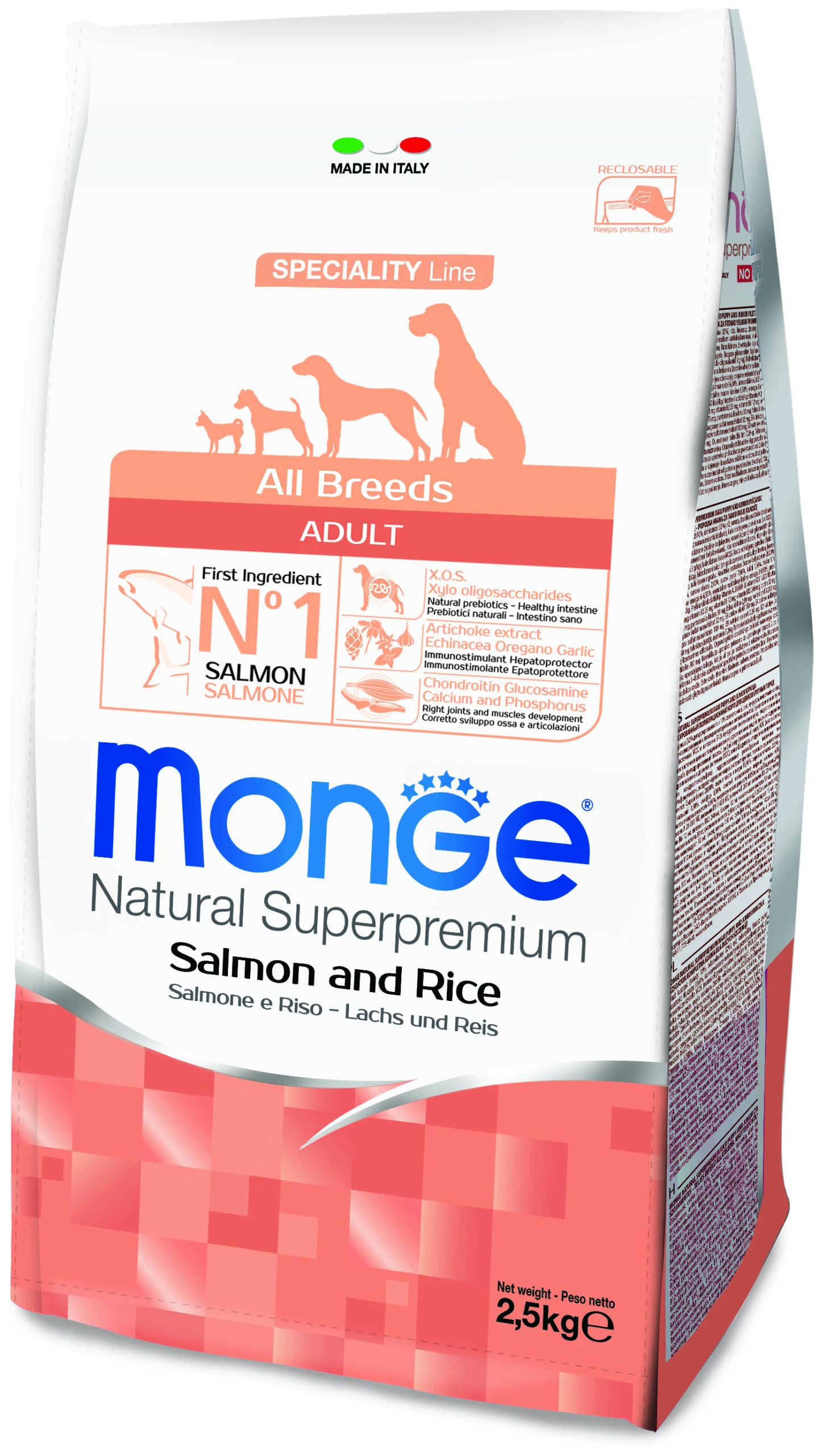 El Monge Natural Superpremium es indicado para todas las Razas Adult Salmón y Arroz Fórmula Sin Soja.