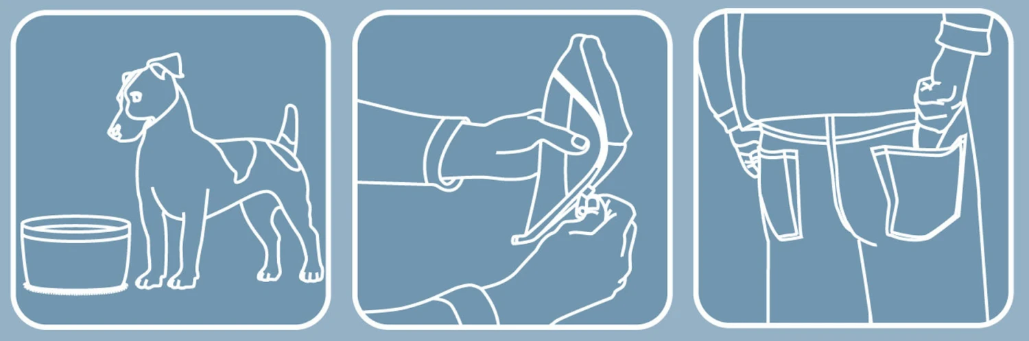 – Abierto, es un tazón de agua o comida de tamaño generoso incluso para los perros más hambrientos. – Cerrado, con cremallera, es un pequeño triángulo que cabe en el bolsillo. – Adecuado para alimento seco o agua. – Capacidad 1,4 L. – Mosquetón incluido. – Lavar a máquina con cuidado o a mano. Secar al aire.