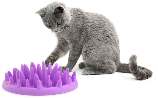 La cantidad deseada de comida para gatos se dispersa aleatoriamente sobre el, y le corresponde a su gato empujar y agarrar la comida entre los muchos picos suavemente redondeadas.