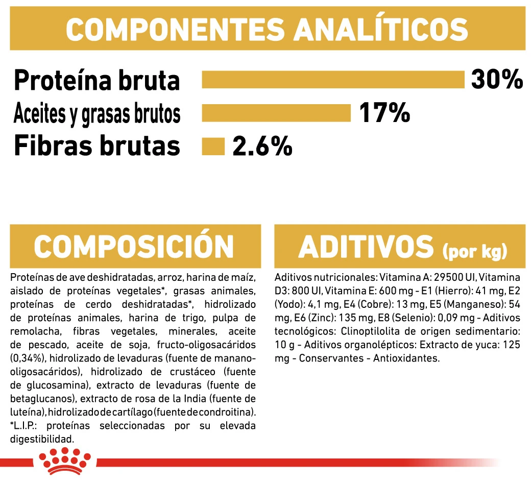 COMPOSICIÓN: arroz, proteínas de ave deshidratadas grasas animales