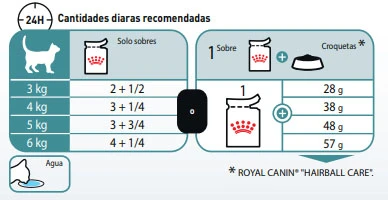 Para adaptarse a las preferencias de cada gato, Hairball Care de ROYAL CANIN® también está disponible en formato seco, con palatables croquetas. Si deseas proporcionar a tu gato una alimentación mixta, sigue nuestras pautas de alimentación para garantizar que recibe la cantidad precisa de ambos alimentos y así aprovechar todos sus beneficios.