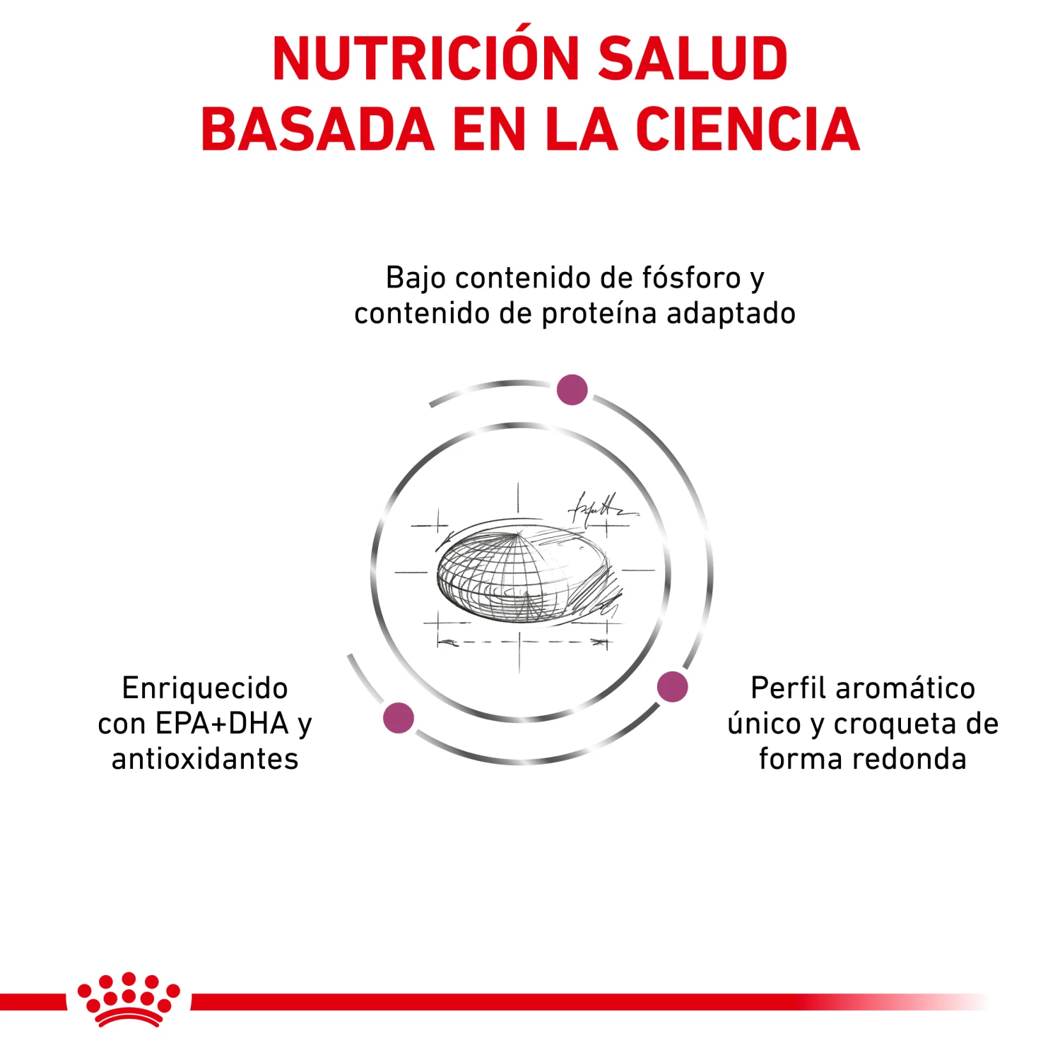 Beneficios de Royal Canin Renal Special CanineManejo de la enfermedad renal crónica: es rico en DHA y EPA, antioxidantes y bajo en fósforo