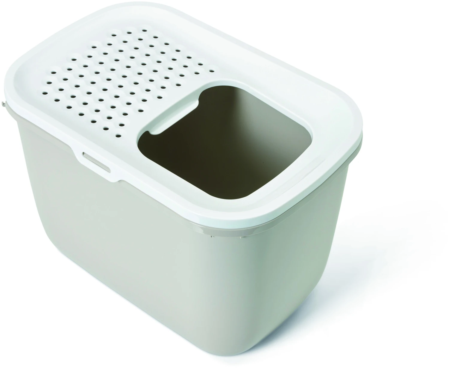 Bandeja sanitaria con entrada superior ideal para aquellos gatos que les gusta orinar parados. Gracias a su pequeña entrada las patas de nuestros felinos se mantendrán limpias.