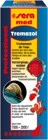 Este acondicionador de agua es eficaz contra los gusanos de las branquias y de la piel, las tenias y los trematodos de la subclase Digenea (p. ej. gusanos de las escamas o gusanos causantes de cataratas) en el agua dulce y salada. La fórmula especial de sera med Professional Tremazol asegura una distribución excelente del principio activo, que normalmente es poco soluble, en el agua, de manera a garantizar un efecto rápido y seguro.