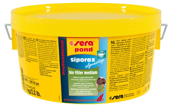 sera siporax pond algenstop Professional es un medio de filtrado biológico que contiene bacterias que absorben nutrientes y que elimina el fosfato de forma natural. El exceso de fosfato puede provocar una proliferación de algas. Al entrar en contacto con el agua las bacterias inician inmediatamente su actividad y crecimiento y permanecen activas de forma duradera. El medio de filtrado de alto rendimiento sera siporax, optimiza la eficacia de las bacterias como sustrato. Permite aumentar al máximo la superficie y, por lo tanto, unas condiciones ideales para el asentamiento de bacterias. Si se utiliza como medida preventiva, se evita una acumulación de fosfatos.