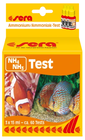 El amonio y el amoníaco se producen principalmente a partir de los excrementos de los peces. En función del valor de pH, el amonio se transforma en amoníaco y viceversa. Mientras que el amonio, en gran parte, es inofensivo, el amoníaco es tóxico para los peces. Con el sera test de NH4/NH3 es posible determinar los dos valores (con la ayuda del valor de pH, en la tabla que acompaña el test puede leer el valor real de amoníaco). En caso de peligro, el sera toxivec (agua dulce), o el sera pond toxivec (en el estanque), son de gran ayuda. El sera bio nitrivec (agua dulce), sera marin bio reefclear (agua salada) o sera pond bio nitrivec (estanque) evita la acumulación de estas sustancias de manera duradera. Es suficiente para unas 60 mediciones.