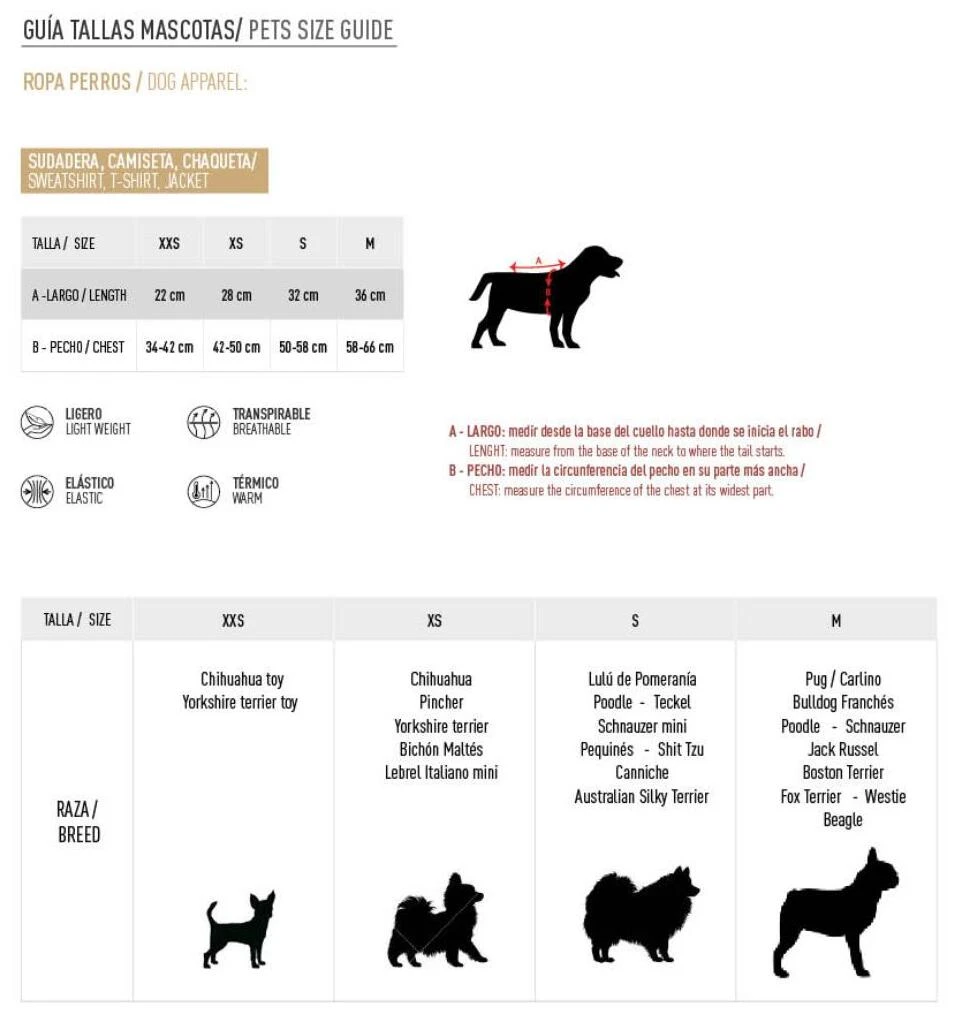 XXS = Largo: 22 cm / Pecho: 32-42 cm