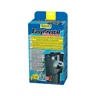 Características de Tetra EasyCrystal 600Filtro interior para acuarios grandes que mantiene el agua cristalina y limpiaEl modelo 600 dispone de un compartimiento para el calentador (no incluido)Proporciona una excelente filtración mecánica, biológica y químicaMecánica: elimina las particulas en suspensión (doble cara)Biológica: esponja filtrante para el desarrollo de las útiles bacteriasQuímica: el carbón activo se encarga de mantener el agua cristalina y libre de malos oloresEl filtro Tetra es fácil de instalar, con ventosas de larga vita útilMantenimiento sencillo, sustituir el cartucho cada 4 semanas2 años de garantía