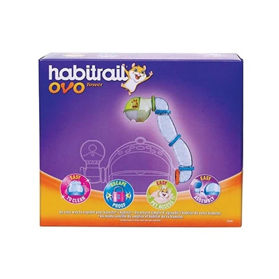 Características de la torre ascendiente Complemento ideal para los hámsters que quieren movilidad ascendente. La torre combina pasajes de escalada y una acogedora madriguera para explorar y descansar. Su diseño redondeado facilita la limpieza y evita que tu hámster pueda roerla. Se adapta perfectamente a todos los módulos Habitrail Ovo.