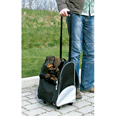 El trolley mochila para mascotas es una mochila cómoda y resistente diseñada para transportar a perros pequeños, gatos y roedores. Es totalmente segura e ideal para viajar en el tren o en autobús. Disponible en color negro/gris.