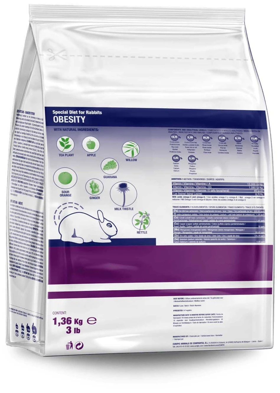 Cunipic Vetline Obesity Conejos está disponible en 1.36 kg.