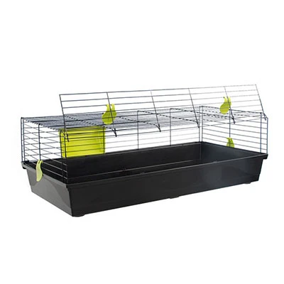Jaula de tamaño grande especial para conejos. El modelo 527 es una jaula plegable con un montaje muy sencillo. Incluye diferentes accesorios de plástico polipropileno, un material no tóxico para animales. Colores surtidos*.Medidas: 120 x 59 x 40 cm.