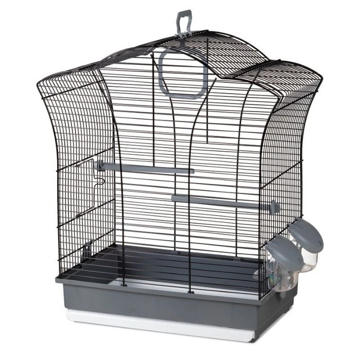 Jaula Voltrega para pájaros pequeños y medianos con asa para transportar. Esta jaula para pájaros incluye accesorios de plástico no tóxico: comederos, saltadores y columpio. Todo lo imprescindible para que nuestra ave disfrute de una vida tranquila y feliz. Medidas: 57 x 27 x 57,5 cm. Color blanco.